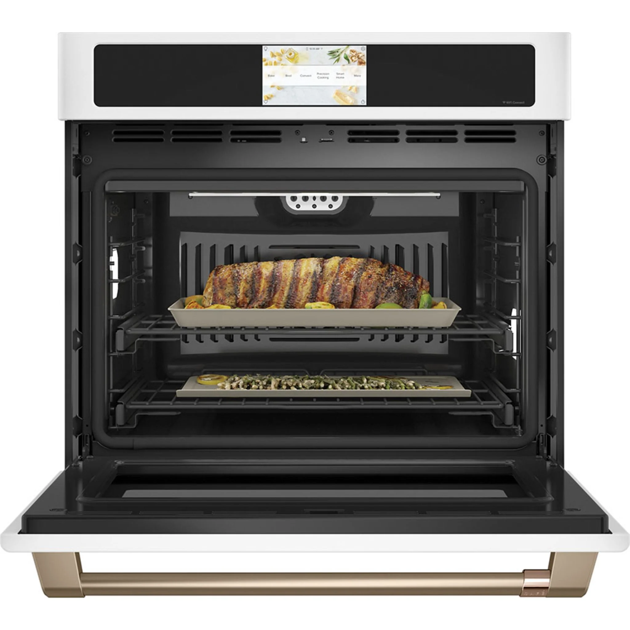 Café 30" Built-In Convection Single Wall Oven Matte White - CTS90DP4NW2 WiFi Connect, No Preheat Air Fry, Self-Clean with Steam Clean Option, True European Convection with Direct Air, In-Oven Camera, Never-Scrub Rack, Customizable Handle, Glass-Touch Control, Full-Colour Display, Probe mode